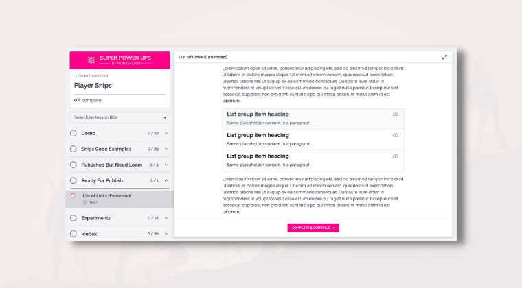 PS-028 - This Player Snip creates a list of links with a subtle hover effect. Each item has a heading and subtext to describe the item along with an icon